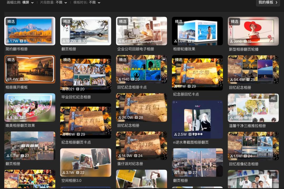 更麻烦的,即便用多个模板凑下时长,这么多张横竖比例不同的照片,替换素材和调整比例,还要机械式的耗费大量时间,最后观感也不一定好。