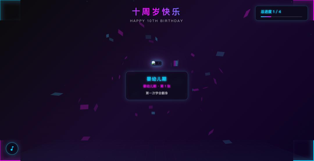 请帮我创建一个十周岁生日宴照片自动播放网站,要求如下: