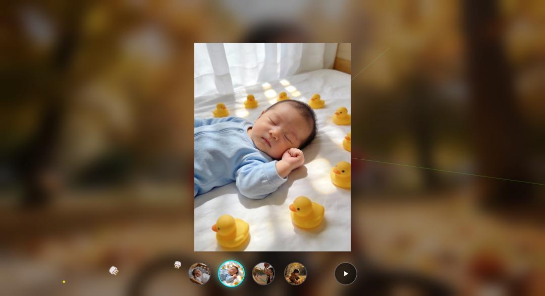 自动播放:每张照片展示 4-6 秒(可配置),自动切换下一张
